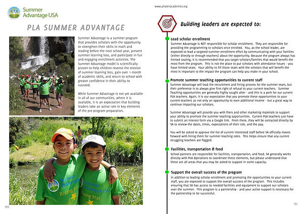 Summer Advantage will lead the recruitment and hiring process for the summer team, but their preference is to always give first right of refusal to your current teachers. Summer Teaching opportunities are generally highly sought after - and this is a perk for our current PLA teachers. Again, it is our expectation that you promote these opportunities to your current teachers as not only an opportunity to earn additional income - but a great way to continue impacting our scholars.
