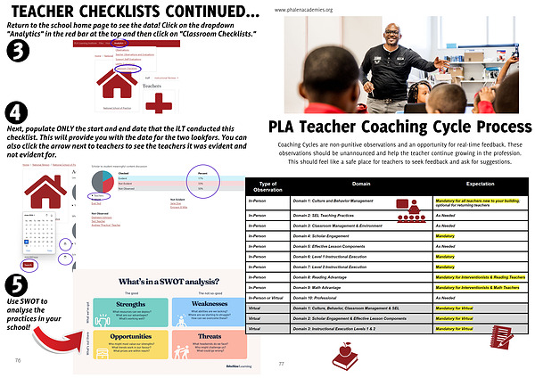 Coaching Cycles are non-punitive observations and an opportunity for real-time feedback. These observations should be unannounced and help the teacher continue growing in the profession. This should feel like a safe place for teachers to seek feedback and ask for suggestions.