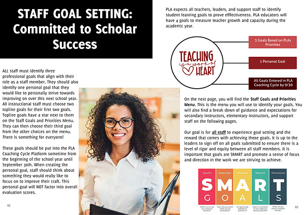 PLA expects all teachers, leaders, and support staff to identify student learning goals to prove efffectiveness. PLA educators will have 4 goals to measure teacher growth and capacity during the academic year.