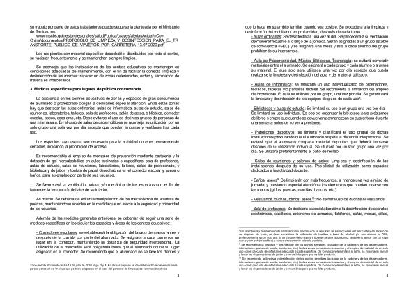 - Salas de reuniones y salones de actos : Limpieza y desinfección de las instalaciones después de su uso . Posibilidad de utilización como espacios dedicados a la actividad docente .