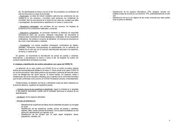 4 . Limpieza y desinfección de centros educativos con casos de COVID-19 .