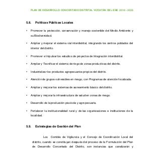 PLAN DE DESARROLLO CONCERTADO DISTRITAL VIZCATÁN DEL ENE 2016 - 2026