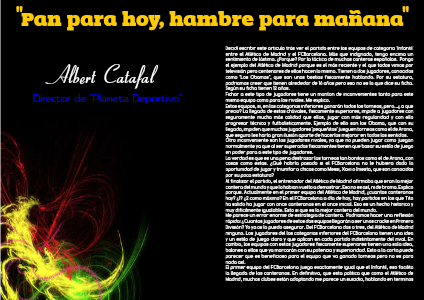 El primer equipo del FCBarcelona juega exactamente igual que el Infantil, eso facilita la llegada de los canteranos. En definitiva, que esta politica que como el Atlético de Madrid, muchos clubes están adoptando me parece un suicidio, hablando en terminos futbolisitcos. Eso es así. Es por eso que he decidido titular este articulo bajo el nombre de "Pan para hoy, hambre para mañana. Éxitos para hoy, fracasos para mañana.