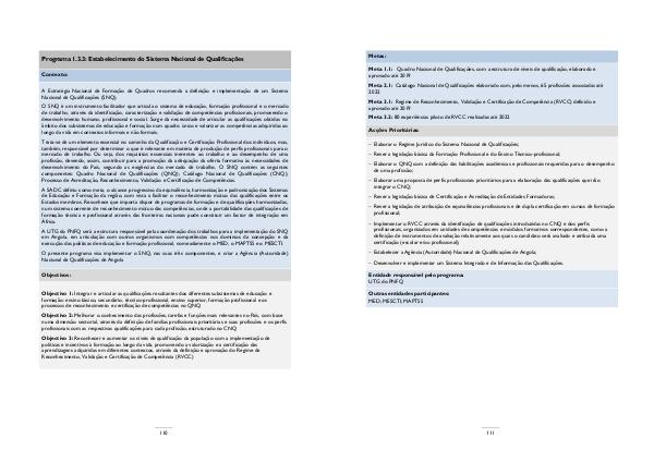 Plano de Desenvolvimento Nacional 2018-2022 PDN 2018-2022_MASTER_vf_Volume 1_13052018 | Seite 111