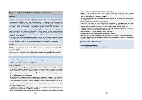 Programa 2.2.1: Melhoria do Ambiente de Negócios e Concorrência