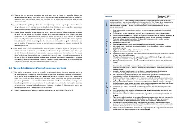 430. Nas tabelas seguintes, apresentam-se as opções estratégicas de desenvolvimento para cada província,