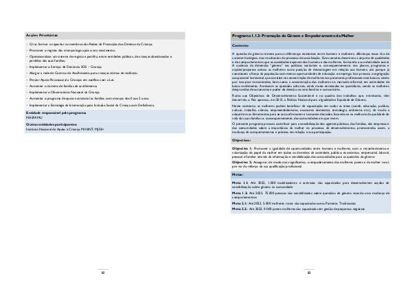 Programa 1.1.3: Promoção do Género e Empoderamento da Mulher