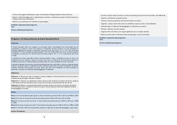O presente Programa visa aumentar a taxa de escolarização do ensino secundário e reduzir o insucesso escolar,