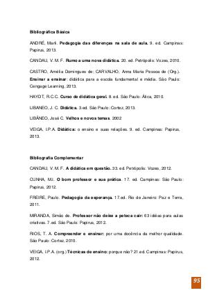 CANDAU, V. M. F. A didática em questão. 33. ed. Petrópolis: Vozes, 2012.