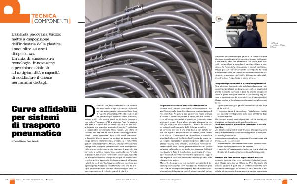 Un prodotto essenziale per l’ efficienza industriale Le curve per il trasporto pneumatico sono componenti chiave all’ interno delle linee di produzione e movimentazione di materiali sfusi. Progettate per garantire un flusso ottimale e ridurre al minimo le perdite di carico, le curve Miozzo si contraddistinguono per la loro precisione geometrica e resistenza nel tempo. Grazie all’ uso di materiali avanzati e tecnologie produttive all’ avanguardia, l’ azienda ha ottenuto un notevole miglioramento dell’ efficienza operativa. La curvatura dei tubi è una sfida tecnica non banale perché non significa semplicemente deformarli, come ricorda Luca Miozzo:“ È una questione di precisione e attenzione ai dettagli, elementi che fanno la differenza. Le nostre curve vengono realizzate in acciaio inossidabile attraverso un processo di piegatura a freddo, che riduce al minimo l’ ovalizzazione del tubo. Questo garantisce non solo una qualità superiore del prodotto, ma anche una maggiore facilità di montaggio in fase di installazione degli impianti”. Il processo di curvatura offre una ripetibilità precisa del raggio e dell’ angolo di curvatura, rendendo il montaggio della linea più semplice e veloce. Ma perché le curve sono così cruciali in un impianto di trasporto pneumatico? Le curve realizzate da Miozzo vengono utilizzate nei più importanti impianti dell’ industria della trasformazione della plastica e del riciclo dei materiali. La loro