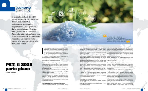 Il mercato globale del PET apre il 2026 con fondamentali deboli, noli volatili e forte concorrenza delle importazioni. Asia guidata dalla speculazione, Europa sotto pressione strutturale, Americhe più resilienti ma con flussi commerciali in continuo riassetto. La ripresa resta legata alla stagionalità e alla domanda estiva.