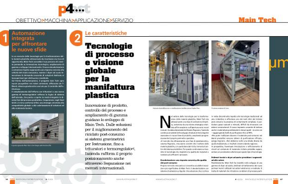 Innovazione di prodotto, controllo del processo e ampliamento di gamma guidano lo sviluppo di Main Tech. Dalle soluzioni per il miglioramento del riciclato post-consumo ai sistemi gravimetrici per l’ estrusione, fino a trituratori e termoregolatori, l’ azienda rafforza il proprio posizionamento anche attraverso l’ espansione nei mercati internazionali.