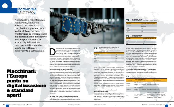 Nonostante il rallentamento del mercato, l’ industria europea dei macchinari per plastica e gomma resta leader globale, ma deve fronteggiare la crescita cinese e il protezionismo. Il rapporto Euromap 2025 indica la strada: digitalizzazione, interoperabilità e standard aperti per rafforzare competitività e sostenibilità.
