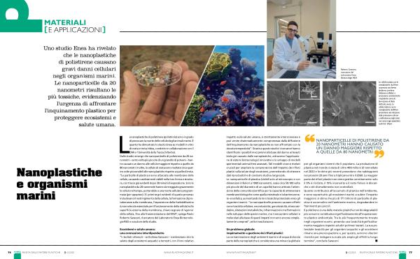 Le cellule trattate con le nanoplastiche da 20nm assumono una forma fusiforme , perdono l ’ adesione cellulare e presentano caratteristiche apoptotiche come la formazione di blebs ( left side , inset ). Le cellule trattate con le nanoplastiche da 80nm presentano una riduzione delle protrusioni cellulari e dell ’ adesione ( right side ) ma senza segni apoptotici ; scale bar : 20 µ m impatto sulla salute umana , è strettamente interconnessa e può venire drammaticamente compromessa dalla diffusione dell ’ inquinamento da nanoplastiche se non affrontato con la dovuta tempestività ”. Grazie a questo studio i ricercatori hanno identificato i possibili meccanismi alla base del danno ai tessuti biologici causato dalle nanoplastiche , attraverso l ’ applicazione di sistemi biotecnologici innovativi e lo sviluppo di modelli sperimentali animal-free avanzati . Tali modelli si sono rivelati cruciali per ampliare la comprensione dell ’ impatto dei rifiuti plastici sulla salute degli ecosistemi , permettendo di ottenere dati riproducibili e di condurre studi su larga scala . Le nanoparticelle di plastica ( visibili solo al microscopio e con dimensioni inferiori a 1000 nanometri , ossia circa 50-100 volte più piccole del diametro di un capello ) hanno attirato l ’ attenzione della comunità scientifica per la capacità di attraversare membrane biologiche come quella intestinale e la barriera emato-encefalica , aumentando la loro tossicità potenziale verso gli organismi marini . “ Le nanoparticelle possono causare effetti come tossicità cellulare , neurotossicità , genotossicità , stress ossidativo , alterazioni metaboliche , infiammazioni e malformazioni nello sviluppo delle specie marine , ma i meccanismi cellulari e molecolari alla base di questi impatti non sono ancora completamente compresi ”, sottolinea Saraceni .