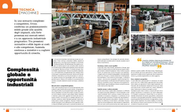 Mercati esteri e competitività globale Union opera prevalentemente sui mercati internazionali, dove realizza la quasi totalità delle proprie vendite. Un’ esposizione che comporta sfide, ma anche grandi opportunità. Oggi il confronto competitivo non è più solo europeo: accanto ai costruttori storici tedeschi, entrano in gioco player indiani, taiwanesi e americani, spesso molto aggressivi sul fronte dei prezzi. In questo contesto, Union punta su un equilibrio delicato ma essenziale: mantenere elevati standard qualitativi riuscendo al tempo stesso a restare competitiva. « Il prezzo è fattore decisionale importante, ma la differenza la fa la capacità di offrire impianti affidabili, performanti e realmente produttivi nel