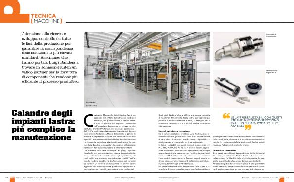 Un sodalizio consolidato Sono passati parecchi anni da quando Luigi Rolfini , Industrial Sales Manager di Johnson-Fluiten , fornitore ben conosciuto nel settore per l ’ affidabilità delle soluzioni proposte , ha suggerito a Luigi Bandera l ’ adozione dei loro giunti rotanti . All ’ epoca Luigi Bandera utilizzava giunti di altri produttori ma ha messo alla prova il nuovo fornitore per la realizzazione di un giunto su misura per una nuova serie di calandre per