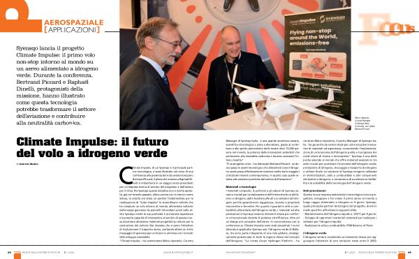 Manager di Syensqo Italia - è una grande avventura umana , scientifica ed ecologica e aiuta a dimostrare , grazie al contributo e allo spirito pionieristico delle nostre oltre 13.200 persone nel mondo , la potenza delle innovazioni sostenibili che porteranno alla neutralità carbonica e faranno avanzare l ’ intera umanità .” “ È un progetto unico – ha dichiarato Bertrand Piccard - un deciso passo in avanti tecnologico che dimostrerà come l ’ idrogeno verde possa effettivamente risolvere molte tra le maggiori criticità del mondo contemporaneo , in questo caso quelle relative alle emissioni prodotte dal settore dell ’ aviazione .”
