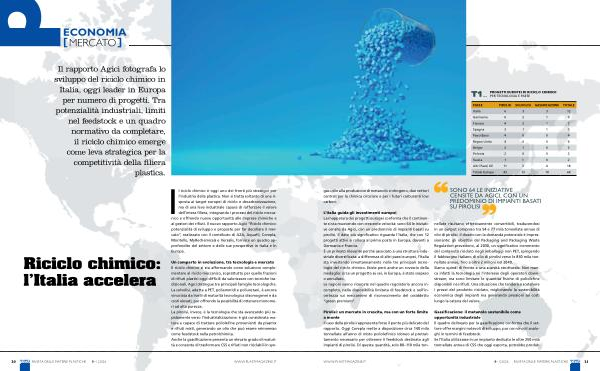 L’ Italia guida gli investimenti europei La mappatura dei progetti europei conferma che il continente si sta muovendo con crescente velocità: sono 64 le iniziative censite da Agici, con un predominio di impianti basati su pirolisi. Il dato più significativo riguarda l’ Italia, che con 12 progetti attivi si colloca al primo posto in Europa, davanti a Germania e Francia. È un primato rilevante perché associato a una struttura industriale diversificata: a differenza di altri paesi europei, l’ Italia sta investendo simultaneamente nelle tre principali tecnologie del riciclo chimico. Esiste però anche un rovescio della medaglia: circa un progetto su sei, in Europa, è stato sospeso o annullato. Le ragioni vanno ricercate nel quadro regolatorio ancora incompleto, nella disponibilità limitata di feedstock e nell’ incertezza sui meccanismi di riconoscimento del cosiddetto“ green premium”.