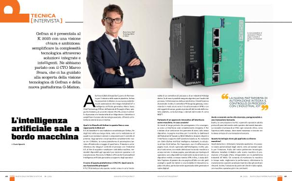 Alla fiera K 2025 di Düsseldorf, punto di riferimento per l’ industria delle materie plastiche, Gefran ha presentato G-Mation, la sua nuova piattaforma di automazione che integra Industrial IoT e intelligenza artificiale generativa. Marco Svara, Chief Technology Officer dell’ azienda di Provaglio d’ Iseo, spiega che il sistema, al cui centro risiede il PLC P6, unisce il controllo di processo e le funzionalità di un Edge device. L’ obiettivo è semplificare l’ accesso alle tecnologie avanzate, offrendo un’ interfaccia utente sicura e intuitiva.