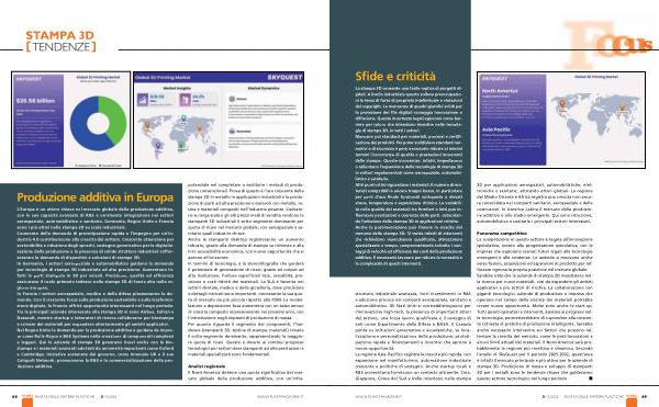 L’ Europa è un attore chiave nel mercato globale della produzione additiva, con le sue capacità avanzate di R & S e un’ elevata integrazione nei settori aerospaziale, automobilistico e sanitario. Germania, Regno Unito e Francia sono i più attivi nella stampa 3D su scala industriale. L’ aumento della domanda di prototipazione rapida e l’ impegno per un’ industria 4.0 contribuiscono alla crescita del settore. Crescente attenzione per sostenibilità e riduzione degli sprechi, sostegno governativo per la digitalizzazione della produzione e la presenza di solide strutture industriali rafforzeranno la domanda di dispositivi e soluzioni di stampa 3D. In Germania, i settori aerospaziale e automobilistico guidano la domanda per tecnologie di stampa 3D industriale ad alta precisione. Aumentano infatti le parti stampate in 3D per veicoli. Precisione, qualità ed efficienza assicurano il ruolo primario tedesco nella stampa 3D di fascia alta nella regione europea. In Francia i settori aerospaziale, medico e della difesa plasmeranno la domanda. Con il crescente focus sulla produzione sostenibile e sulla trasformazione digitale, la Francia offrirà opportunità interessanti nel lungo periodo. Tra le principali aziende interessate alla stampa 3D vi sono Airbus, Safran e Dassault, mentre startup e laboratori di ricerca collaborano per biostampa e scienze dei materiali per espandere ulteriormente gli ambiti applicativi. Nel Regno Unito la domanda per la produzione additiva è guidata da imprese come Rolls-Royce e BAE Systems nella creazione di componenti complessi e leggeri. Qui le aziende di stampa 3D generano ricavi anche con la biostampa e i materiali avanzati adottati da università importanti come Oxford e Cambridge. Iniziative sostenute dal governo, come Innovate UK e il suo Catapult Network, promuovono la R & S e la commercializzazione della produzione additiva.