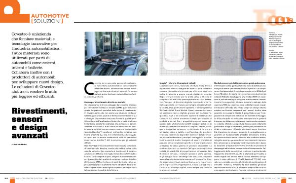 Modulo sensore da tetto per auto a guida autonoma L ’ introduzione della guida autonoma richiede sofisticate tecnologie di sensori per rilevare ostacoli e pericoli . Un componente fondamentale è il modulo sensore da tetto ( RSM = Roof Sensor Module ), che ospita vari sensori per una visuale senza ostacoli . Webasto ha sviluppato un prototipo RSM con copertura in policarbonato per integrare esteticamente i sensori . Covestro ha supportato Webasto durante lo sviluppo della copertura RSM . La copertura deve soddisfare severi requisiti meccanici offrendo allo stesso tempo un design esterno estetico con finestre trasparenti per i sensori . Inoltre , deva garantire la necessaria libertà di progettazione per l ’ integrazione di componenti elettronici ed elementi di fissaggio . La sfida principale era sviluppare una copertura in grado di integrare perfettamente più sensori mantenendo prestazioni e durata ottimali . La copertura doveva essere altamente permeabile ai segnali dei sensori , come quelli provenienti da LiDAR e telecamere , offrendo allo stesso tempo funzionalità di gestione termica per prevenire il surriscaldamento e garantire un funzionamento affidabile del sensore . Inoltre , la copertura doveva essere resistente alle condizioni meteorologiche avverse , garantendo un funzionamento impeccabile , ad esempio a temperature estremamente alte o basse . La soluzione proposta da Covestro prevede un processo di stampaggio ad iniezione e compressione bicomponente . L ’ alloggiamento della sensoristica è realizzata in policarbonato trasparente Makrolon ® AG , che è altamente permeabile ai diversi segnali dei sensori . Per la cornice , elemento di supporto , è stato utilizzato il PC-ABS Bayblend ® T95 MF , colorato nero , caricato con minerali . Grazie alla combinazione di entrambi i materiali , il modulo del tetto soddisfa gli elevati requisiti meccanici e ottici , e allo stesso tempo offre un attraente aspetto simile al vetro . L ’ elevata resistenza al calore del