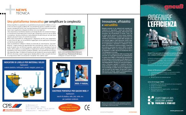 Gefran semplifica la complessità con la piattaforma di automazione G-Mation e il nuovo PLC da interno quadro G-Mation P6, una piattaforma aperta e scalabile che implementa lo standard IEC 61131-3 per la programmazione PLC e garantisce continuità con tutto il parco applicativo sviluppato da Gefran nel corso degli anni. Essa comprende un’ architettura basata su tecnologia Docker che consente di integrare innumerevoli funzionalità sotto forma di app, esattamente come nel caso di tablet e smartphone. Questa architettura è stata disegnata fin dall’ inizio per non aver alcun impatto sulle performance di controllo di processo. Molte delle funzionalità di configurazione e diagnostica del PLC sono implementate sotto forma di app, con la possibilità di aggiungere nuove applicazioni attraverso un’ interfaccia web dedicata. Tutta la piattaforma G-Mation è basata sul protocollo di comunicazione“ real time” Ethercat: i singoli moduli I / O rappresentano dei nodi Ethercat, mentre il PLC P6 è in grado di gestire due reti Ethercat separate, supportando anche topologie di rete ad anello, stella e albero. La compatibilità con applicazioni esistenti è garantita dalla disponibilità sul PLC anche di master CanOpen e Modbus. Lato connettività verso Cloud o altri dispositivi Edge, il G-Mation P6 implementa gli standard di comunicazione MQTT, OPC UA e Euromap, ai quali si aggiungono database SQL / non-SQL e versatili interfacce di configurazione della comunicazione in modalità“ low-code / no-code”.