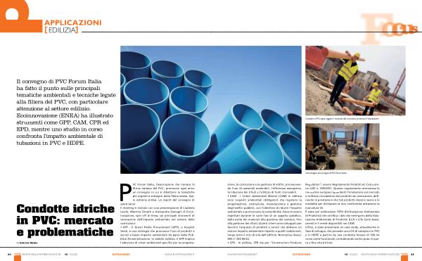 Regulation”, ovvero Regolamento Prodotti da Costruzione( UE) n. 305 / 2011. Questo regolamento armonizza le normative europee riguardanti l’ immissione sul mercato e la libera circolazione dei prodotti da costruzione, definendo le prestazioni che tali prodotti devono avere e le modalità per dichiarare la loro conformità attraverso la marcatura CE. È stato poi evidenziato l’ EPD( Dichiarazione Ambientale di Prodotto) che certifica i dati che emergono dalla Valutazione Ambientale di Prodotto( LCA = Life Cycle Assessment) e li rende disponibili nei CAM. Infine, è stato presentato un case study, attualmente in fase di sviluppo, che prevede una LCA di tubazioni in PVC e in HDPE a partire da una condotta lineare di 100 mt come unità funzionale, considerando anche posa in opera e fine vita( riciclo).