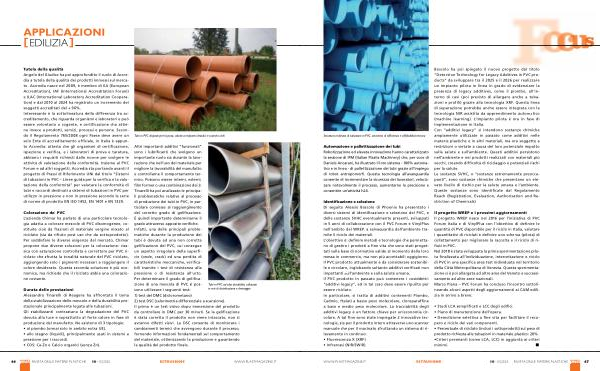 Tutela della qualità Angelo del Giudice ha poi approfondito il ruolo di Accredia a tutela della qualità dei prodotti immessi sul mercato. Accredia nasce nel 2009, è membro di EA( European Accreditation), IAF( International Accreditation Forum) e ILAC( International Laboratory Accreditation Cooperation) e dal 2010 al 2024 ha registrato un incremento dei soggetti accreditati del + 96 %. Interessante è la sottolineatura della differenza tra accreditamento, che riguarda organismi e laboratori e può essere volontario o cogente, e certificazione cha attiene invece a prodotti, servizi, processi e persone. Secondo il Regolamento 765 / 2008 ogni Paese deve avere un solo Ente di accreditamento ufficiale, in Italia è appunto Accredia: attesta che gli organismi di certificazione, ispezione e verifica, e i laboratori di prova e taratura, abbiano i requisiti richiesti dalle norme per svolgere le attività di valutazione della conformità. Insieme al PVC Forum e ad altri soggetti, Accredia sta portando avanti il progetto di Prassi di Riferimento UNI dal titolo“ Sistemi di tubazioni in PVC – Linee guida per la verifica e la valutazione della conformità” per valutare la conformità di tubi e raccordi destinati a sistemi di tubazioni in PVC per utilizzo in pressione e non in pressione secondo le serie di norme di prodotto EN ISO 1452, EN 1401 e EN 1329.