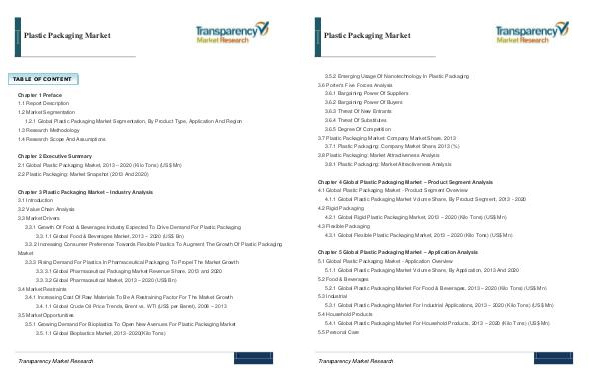 5.2.1 Global Plastic Packaging Market For Food & Beverages, 2013 – 2020( Kilo Tons)( US $ Mn) 5.3 Industrial