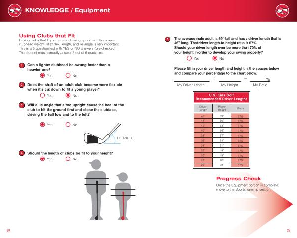 Having clubs that fit your size and swing speed with the proper clubhead weight , shaft flex , length , and lie angle is very important . This is a 5 question test with YES or NO answers ( pre-checked ). The student must correctly answer 5 out of 5 questions .