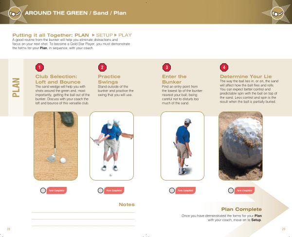A good routine from the bunker will help you eliminate distractions and focus on your next shot . To become a Gold Star Player , you must demonstrate the forms for your Plan , in sequence , with your coach .