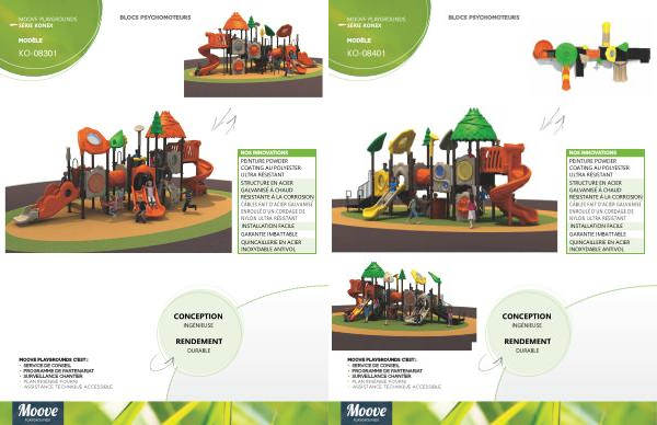 MODÈLE BLOCS PSYCHOMOTEURS MOOVE PLAYGROUNDS C ’ EST : • SERVICE DE CONSEIL • PROGRAMME DE PARTENARIAT • SURVEILLANCE CHANTIER NOS INNOVATIONS CÂBLES NYLON ULTRA RÉSISTANT DE D ' UN CORDAGE ENROULÉ D ' ACIER GALVANISÉ FAIT PEINTURE ULTRA RÉSISTANT COATING AU POLYESTER POWDER QUINCAILLERIE ANTIVOL INOXYDABLE EN ACIER • PLAN INGÉNISÉ FOURNI • ASSISTANCE TECHNIQUE ACCESSIBLE MOOVE PLAYGROUNDS KONEX SÉRIE STRUCTURE À LA CORROSION RÉSISTANTE À CHAUD GALVANISÉ EN ACIER GARANTIE IMBATTABLE INSTALLATION FACILE CONCEPTION RENDEMENT DURABLE INGÉNIEUSE !"# 08401