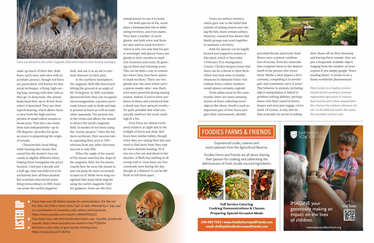 Both fox species can be legally hunted and trapped in season in Maryland, which is November 1-February 15 in Montgomery County. Chicken keepers know that foxes can be a threat to their flock which may lead some to drastic measures to eliminate foxes— but without foxes, rodent numbers would almost certainly explode!