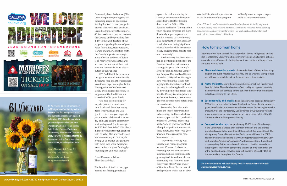 For more information, visit the Office of Food Systems Resilience website at montgomerycountymd. gov / ofsr. plenty I autumn harvest 2025 29