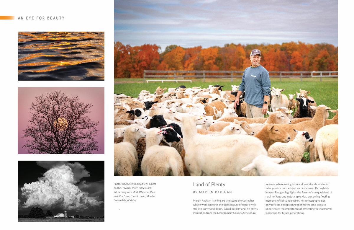 Photos clockwise from top left: sunset on the Potomac River, Riley’ s Lock; fall farming with Mark Walter of Plow and Star Farm; thunderhead; March’ s“ Worm Moon” rising.