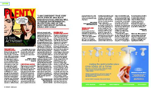 I’ m not an expert, but I have certain ideas about foods that I would like to see reflected in your magazine in the future.