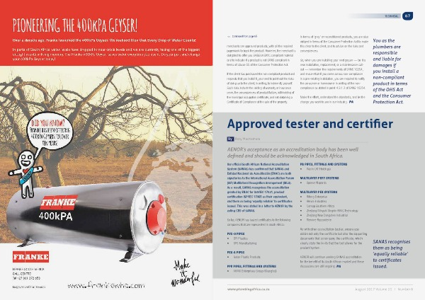 www. plumbingafrica. co. za August 2017 Volume 23 I Number 6