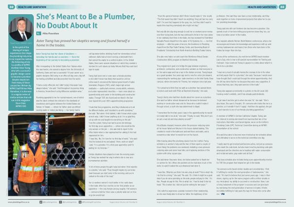 At one of the conferences , she met former IAPMO board member Laura Ceja , who is now a UA special representative for Training and Outreach . Ceja convinced Tseng to appear in a video about what it is like to be a plumber .