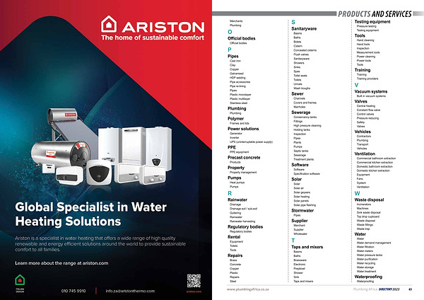 62 Plumbing Africa DIRECTORY 2023 www . plumbingafrica . co . za