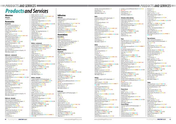64 Plumbing Africa DIRECTORY 2023 www . plumbingafrica . co . za
