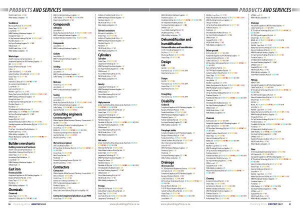 66 Plumbing Africa DIRECTORY 2023 www . plumbingafrica . co . za