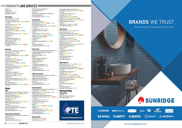 80 Plumbing Africa DIRECTORY 2023 www . plumbingafrica . co . za