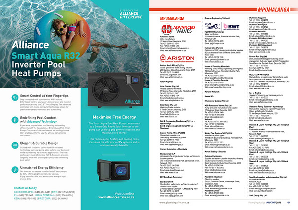 www. plumbingafrica. co. za Plumbing Africa DIRECTORY 2026 43