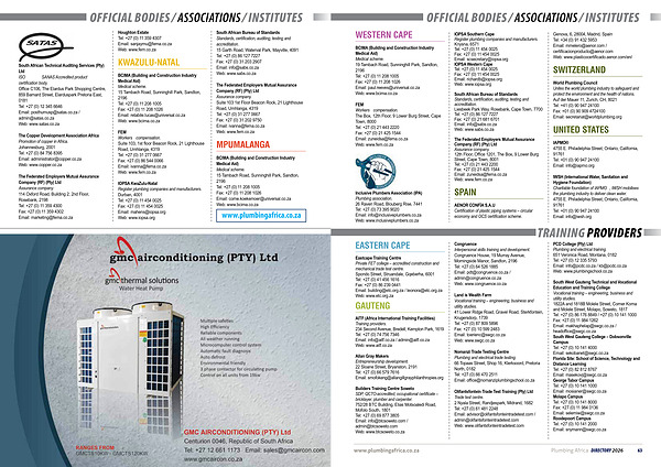 www. plumbingafrica. co. za Plumbing Africa DIRECTORY 2026 63