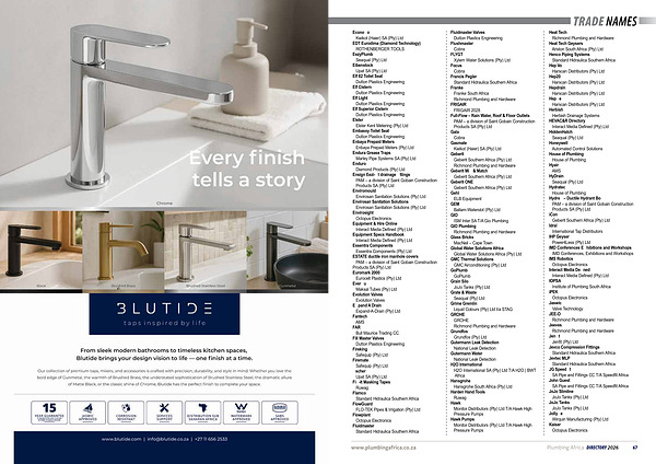www. plumbingafrica. co. za Plumbing Africa DIRECTORY 2026 67
