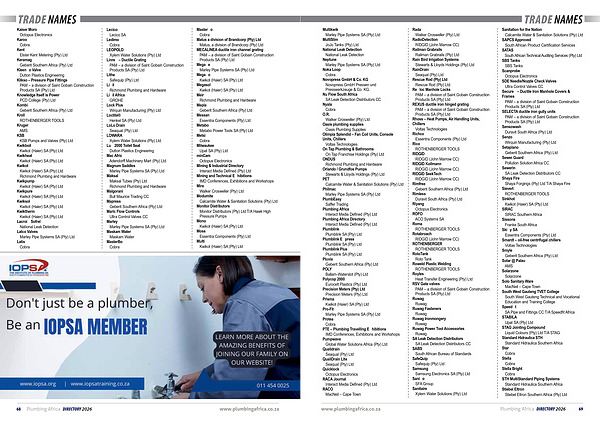 68 Plumbing Africa DIRECTORY 2026 www. plumbingafrica. co. za