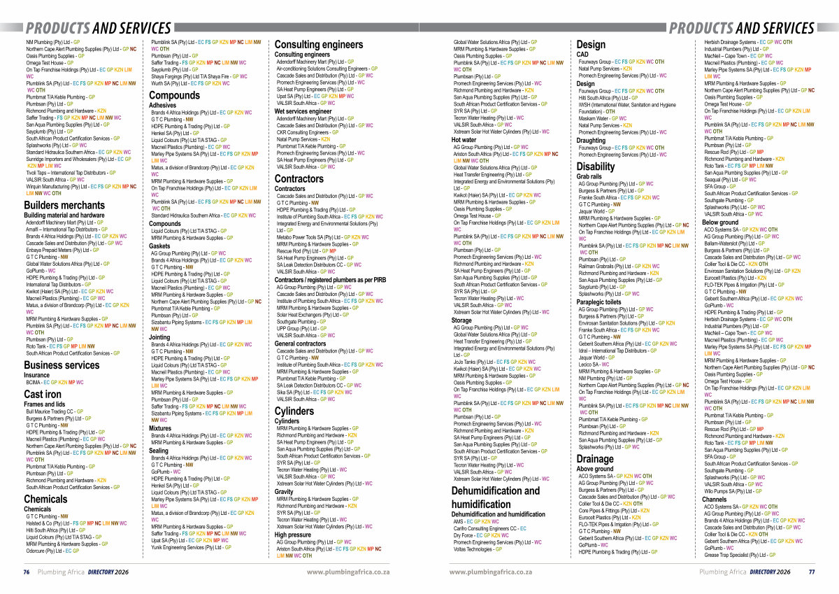 76 Plumbing Africa DIRECTORY 2026 www. plumbingafrica. co. za