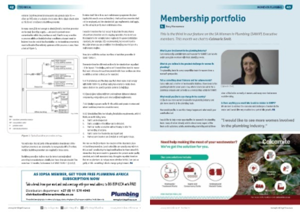 AS IOPSA MEMBER , GET YOUR FREE PLUMBING AFRICA SUBSCRIPTION NOW Take a break from your work and send a message with your email address to 061 809 6254 with PA02