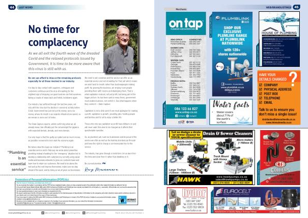 www . plumbingafrica . co . za @ plumbingonline @ plumbingonline @ PlumbingAfricaOnline March 2022 Volume 28 I Number 1