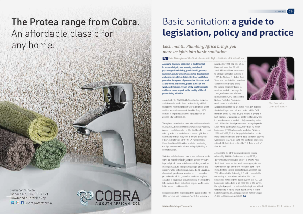 Access to adequate sanitation is fundamental to personal dignity and security, social and psychological well‐being, public health, poverty reduction, gender equality, economic development and environmental sustainability. Poor sanitation promotes the spread of preventable diseases such as diarrhoea and cholera, places stress on the weakened immune system of HIV positive people and has a major impact on the quality of life of people living with Aids.